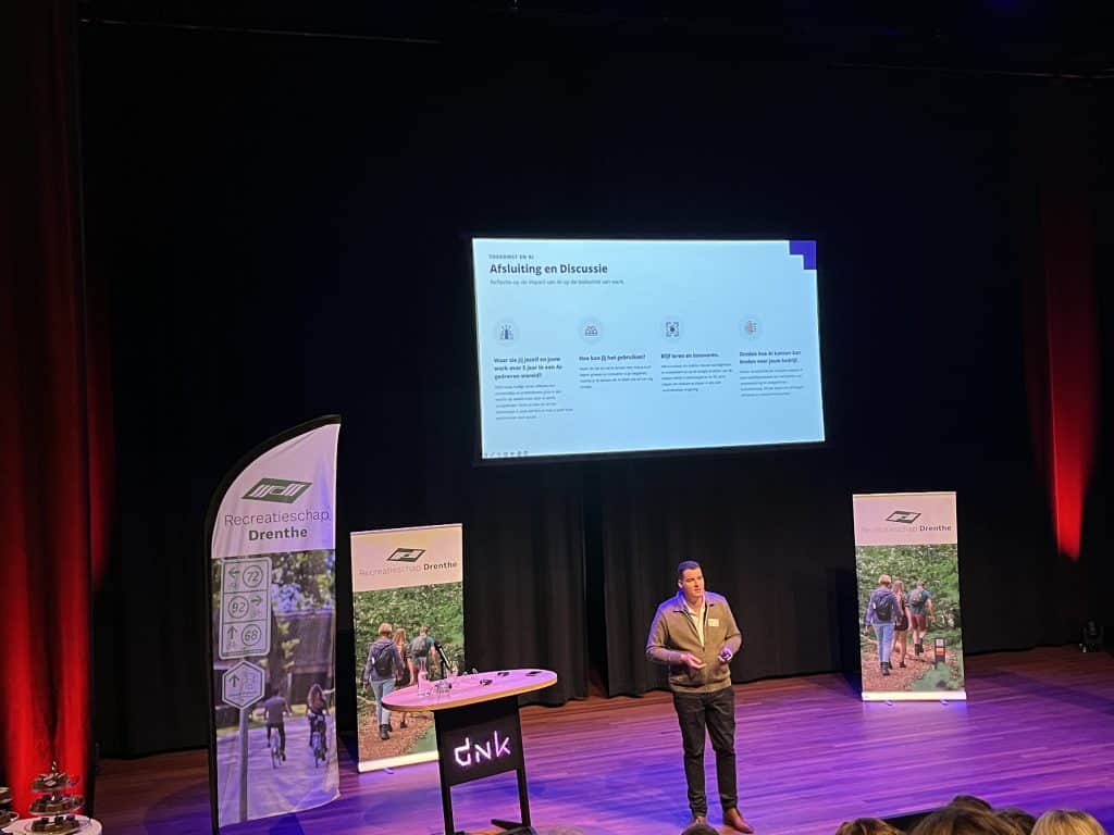 Erik Davids van Meceda gaf zijn lezing voor recreatieprofessionals die vooruit willen kijken en voorbereid willen zijn op de technologische veranderingen. Hij vertelde over de unieke mogelijkheden van van kunstmatige intelligentie (AI) en ChatGPT binnen de recreatiebranche en besprak hoe AI de sector kan helpen met klantinteractie, het verbeteren van de gastervaring en het optimaliseren van operationele processen.