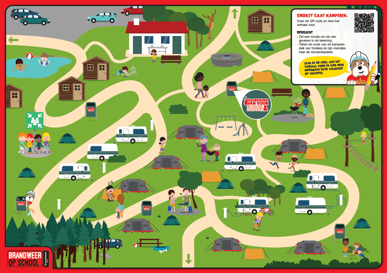 Speciaal voor de kinderen is er een plattegrond ontwikkeld van de camping met een spelelement erin. Hiermee kunnen kinderen op een leuke manier kennismaken met de gevaren van een brand.